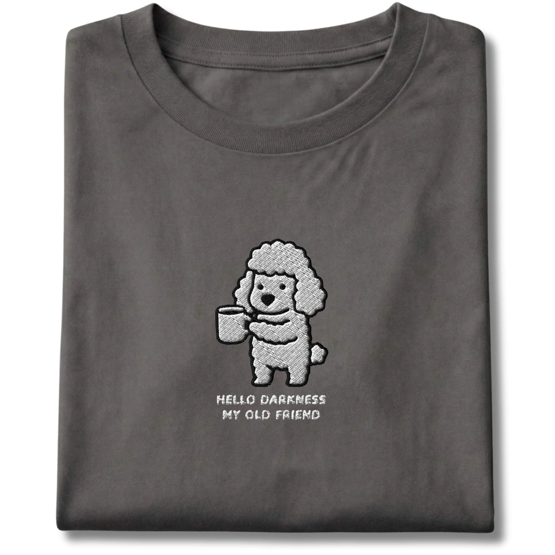 Embroidered Poodle Hello Darkness My Old Friend Tee